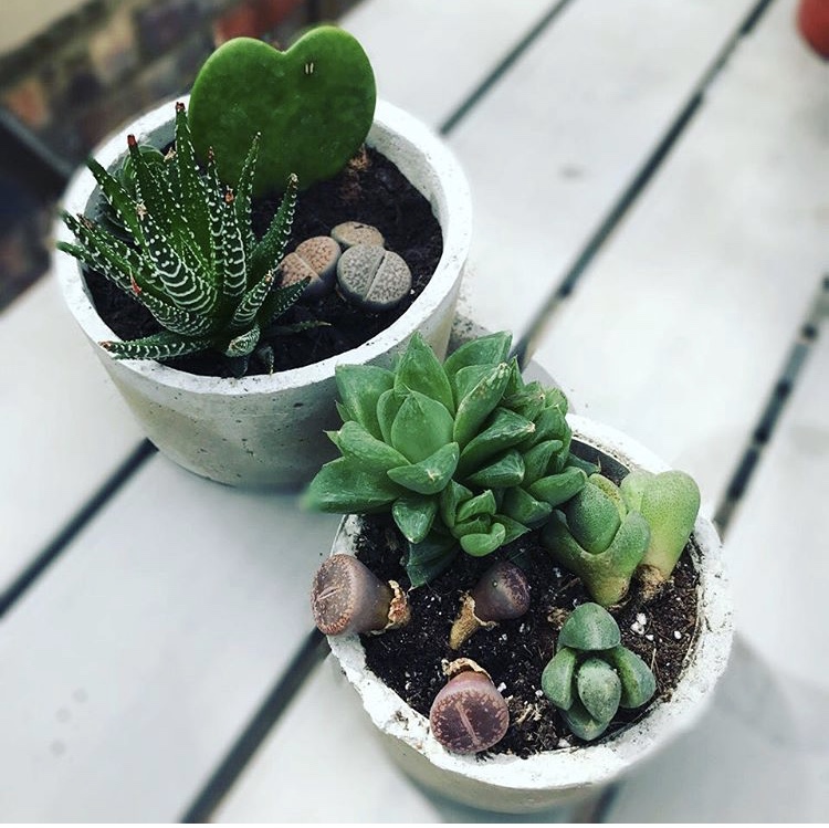 Making these super cool pots didn’t take long at all (except the waiting time for the concrete to dry!) and it was super easy. I mean, Ariana is 3 and she managed to get them done almost by herself. All you need to do is to choose two containers per pot. The larger one will make the outside of the pot determining both the size and shape of the final product. The smaller one, will set the size of the interior of the pot and that would be the space that you would have for your succulents. We are not leaving a drainage whole, so bear that in mind when choosing the plants to go inside.